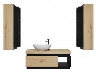 Łazienka Koda 2 dąb lefkas/czarny mat zestaw mebli wiszących