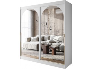 Szafa Gold to model przesuwny, wyróżniający się złotymi szprosami i lustrem. Dostępna w kolorach biały i kaszmir, z krótkim czasem realizacji - od 5 dni.