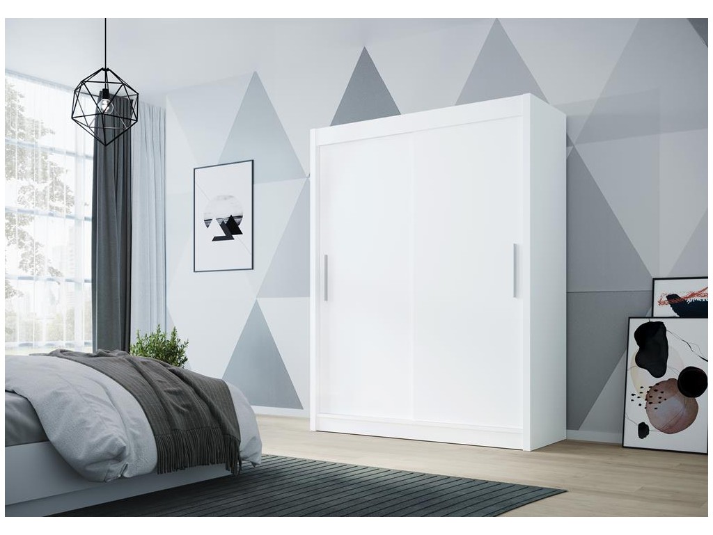 Szafa przesuwna Doti 120 w kolorze biały mat to nowoczesny i minimalistyczny mebel do sypialni, pokoju młodzieżowego lub przedpokoju. Gładkie fronty nadają elegancki charakter, a dwudrzwiowy system przesuwny zapewnia łatwy dostęp do wnętrza z półkami i drążkiem na ubrania. Kompaktowa szerokość 120 cm pozwala optymalnie wykorzystać przestrzeń w mniejszych pomieszczeniach.