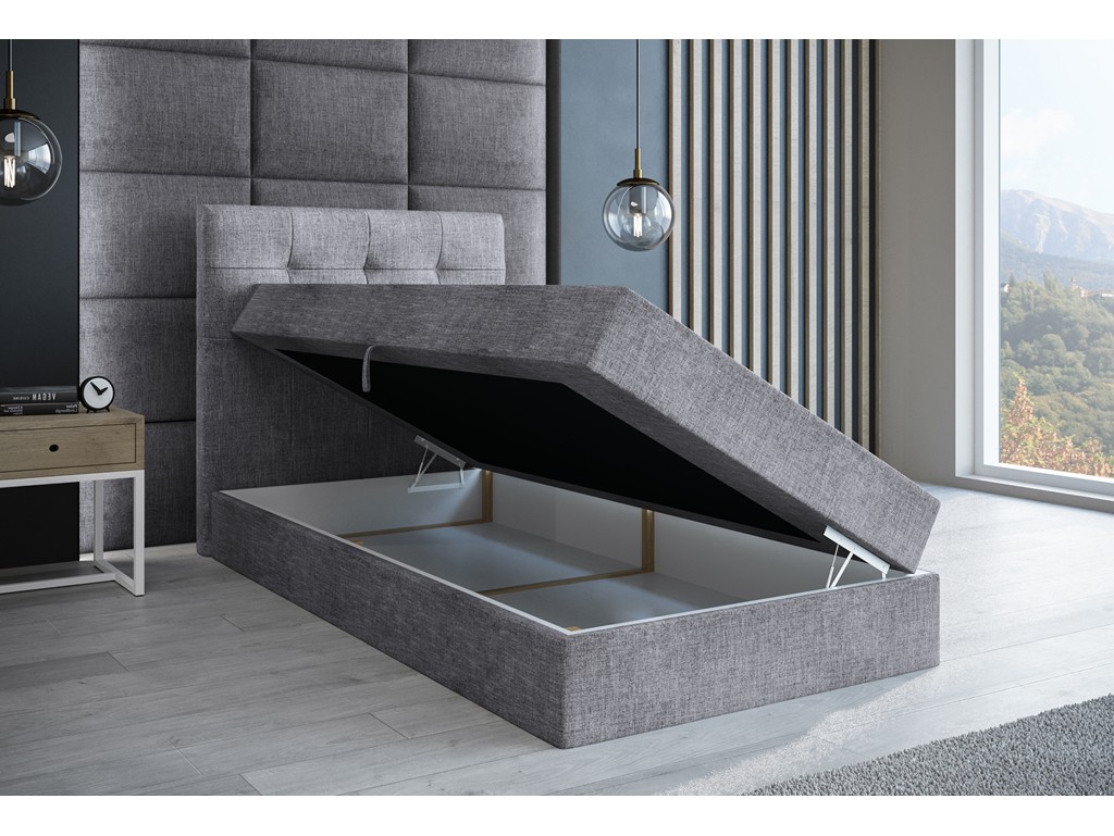 Łóżko kontynentalne Sleepy w rozmiarze 80 cm w tkaninie Sawana 21 to kompaktowy, jednoosobowy model idealny do niewielkich sypialni lub pokoju gościnnego. Jasnoszara plecionka nadaje wnętrzu elegancki i przytulny charakter, a wbudowany materac z pojemnikiem na pościel zapewnia wygodę i funkcjonalność.