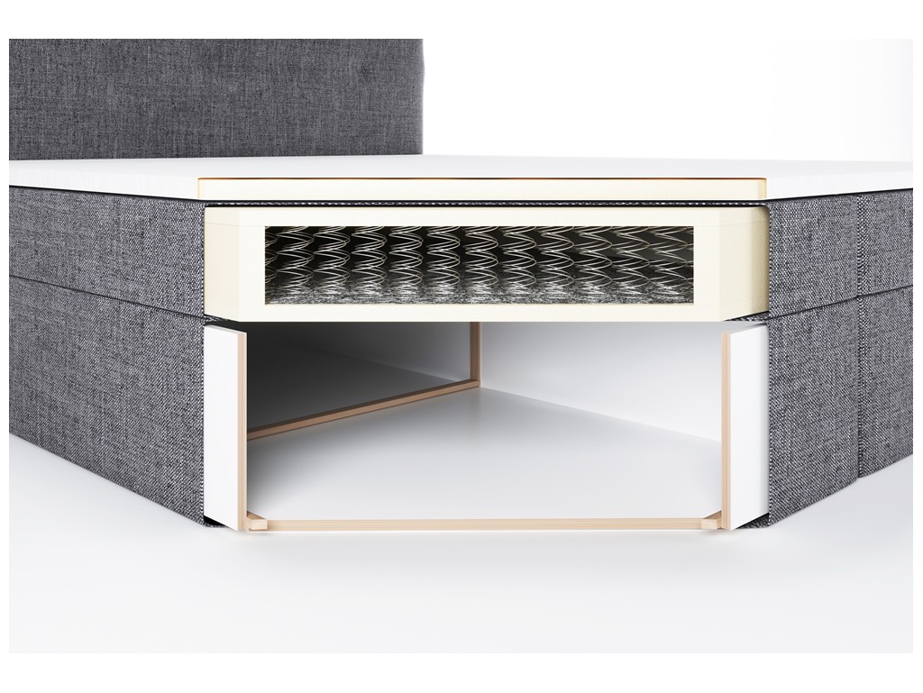 Czy powierzchnia spania wykonana jest z tej samej tkaniny co tapicerka łóżka? - Nie, powierzchnia spania została wykonana z dedykowanej czarnej tkaniny obiciowej materacowej. Takie rozwiązanie poprawia cyrkulację powietrza, zwiększa komfort snu i zapobiega ślizganiu się pościeli.