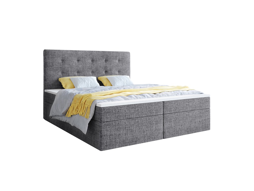 Pojemniki umożliwiają przechowywanie pościeli i drobnych tekstyliów, a pikowane wezgłowie zwiększa komfort siedzenia.