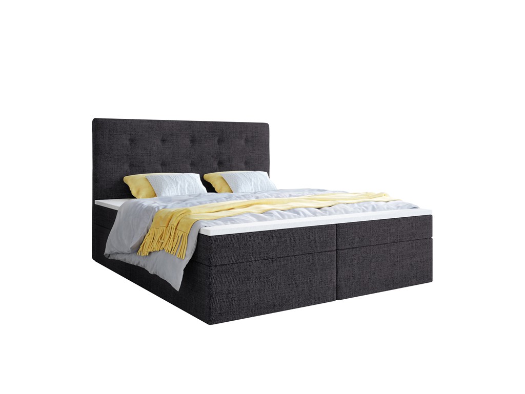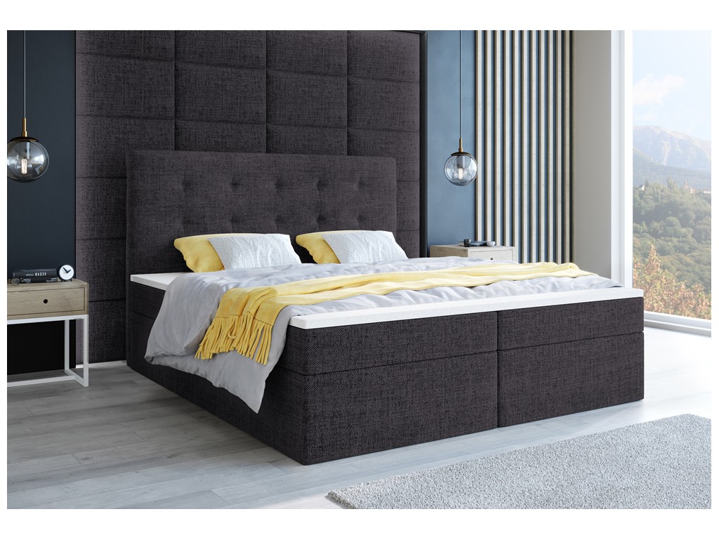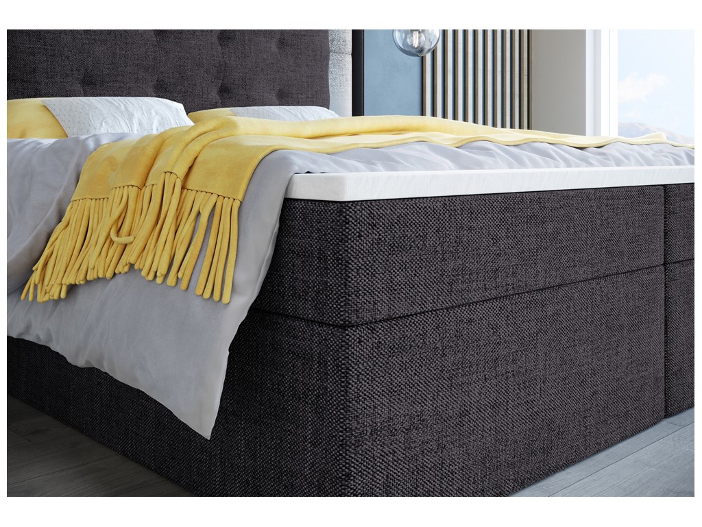 Łóżko kontynentalne Sleepy w rozmiarze 140 cm w tkaninie Inari 96 w odcieniu ciemnego szarego to eleganckie i funkcjonalne rozwiązanie do sypialni. Strukturalna plecionka o wyglądzie lnu wprowadza przytulny, naturalny charakter wnętrza. Model posiada wygodny materac bonelowy, praktyczne pojemniki i trwałą konstrukcję.
