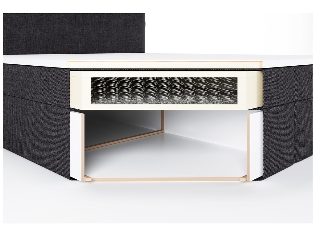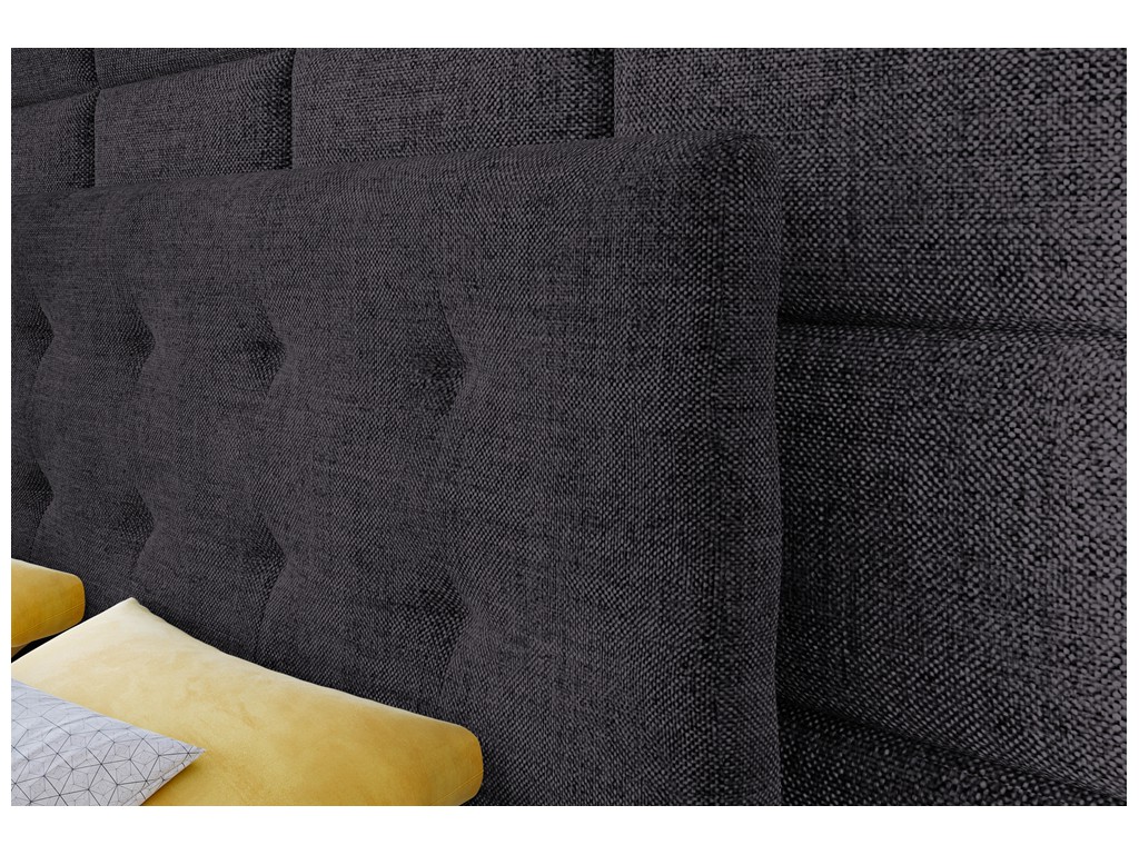 Czy powierzchnia spania wykonana jest z tej samej tkaniny co tapicerka łóżka? - Nie, powierzchnia spania została wykonana z dedykowanej czarnej tkaniny obiciowej materacowej. Takie rozwiązanie poprawia cyrkulację powietrza, zwiększa komfort snu i zapobiega ślizganiu się pościeli.