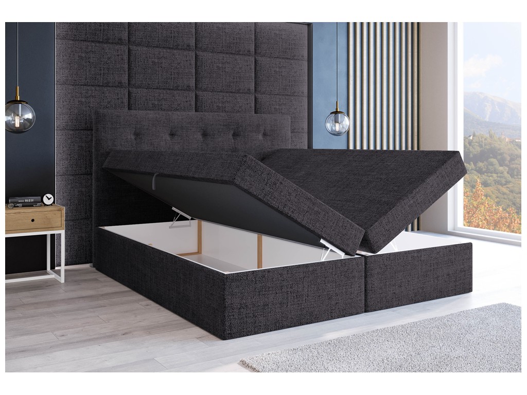 Łóżko kontynentalne Sleepy w rozmiarze 180 cm w tkaninie Inari 96 w kolorze ciemnej szarości to elegancka propozycja do nowoczesnych, stonowanych sypialni. Strukturalna plecionka nadaje wnętrzu głębi i spokojny charakter. Model zapewnia komfort codziennego snu oraz praktyczne rozwiązania w postaci pojemników na pościel.