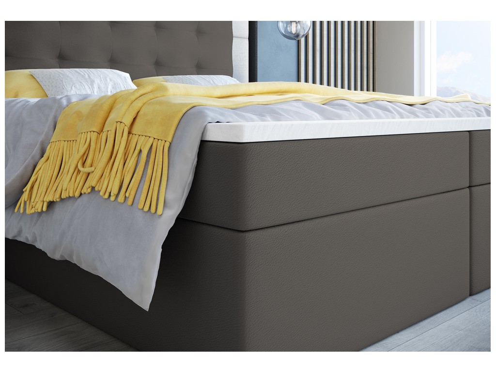 Materac bonelowy połączony z pianką CollFeel zapewnia zdrowy i komfortowy sen, a matowa ekoskóra jest łatwa w utrzymaniu czystości.