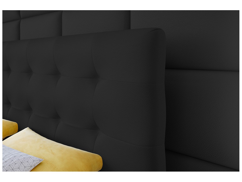 Łóżko kontynentalne Sleepy 160 cm w czarnej ekoskórze Madryt 9100 to komfortowe rozwiązanie dla średnich sypialni. Pikowane wezgłowie zapewnia wygodę podczas siedzenia i relaksu, a matowa ekoskóra w uniwersalnym odcieniu czerni wpasowuje się w różnorodne aranżacje wnętrz.