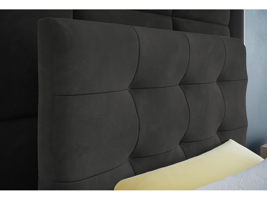 Połączenie sprężyn bonelowych i pianki zapewnia komfortowy sen, a stalowy kolor tapicerki łatwo dopasować do nowoczesnych aranżacji.