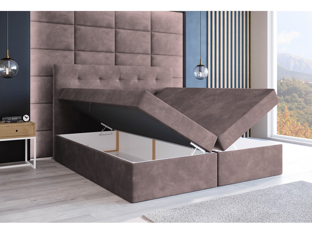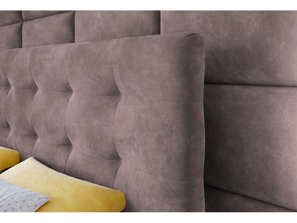 Łóżko kontynentalne Sleepy w rozmiarze 180 cm w tkaninie Kronos 27 brudny róż to elegancka propozycja do przestronnej sypialni, łącząca komfort snu z dopracowaną estetyką. Pikowane wezgłowie oraz miękka welurowa tapicerka nadają wnętrzu przytulnego charakteru, a dwa pojemniki na pościel zwiększają funkcjonalność na co dzień. Model przeznaczony jest dla dwóch osób i dostarczany w formie łatwej do montażu.