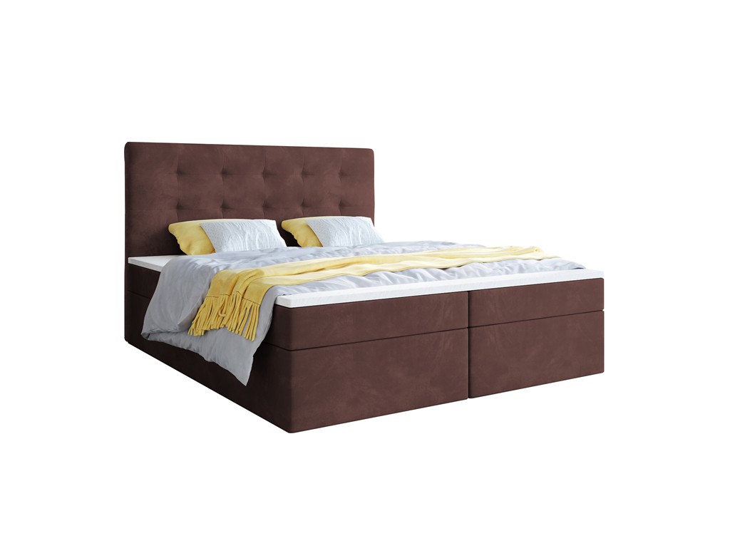 Dzięki miękkiej tkaninie Kronos łóżko prezentuje się luksusowo, a głęboki kolor ożywia przestrzeń.
