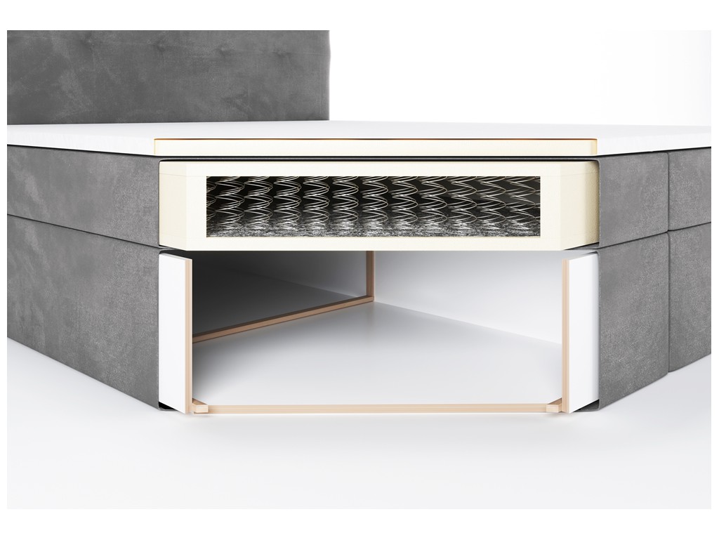 Pojemniki na pościel zapewniają praktyczne miejsce do przechowywania, a automaty sprężynowe umożliwiają łatwe podniesienie materaca.