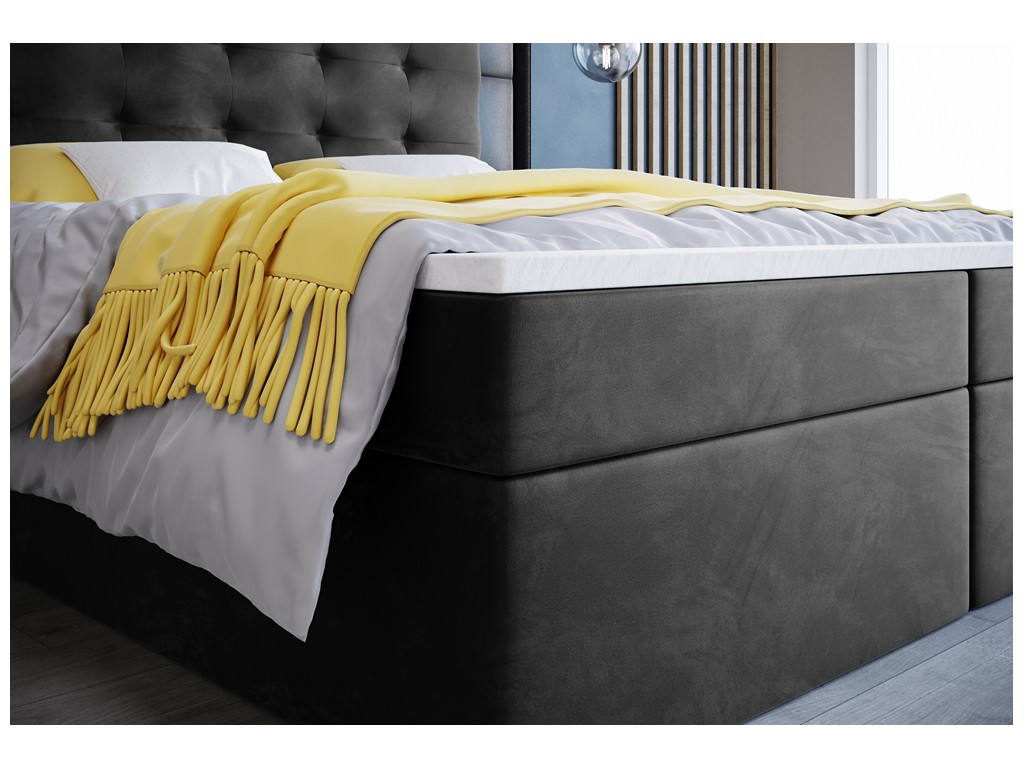 Model Sleepy 160 cm w czarnej tkaninie Riviera 100 zapewnia wygodę snu dzięki zestawieniu sprężyn bonelowych i elastycznej pianki.