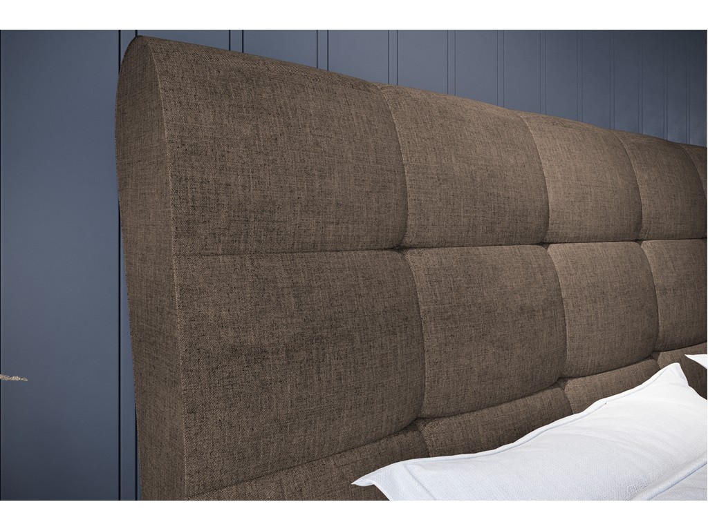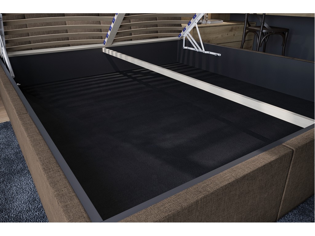 Wbudowany pojemnik pełni funkcję dodatkowego schowka, a tapicerowane wezgłowie zapewnia wygodne oparcie podczas wieczornego relaksu lub czytania książki.