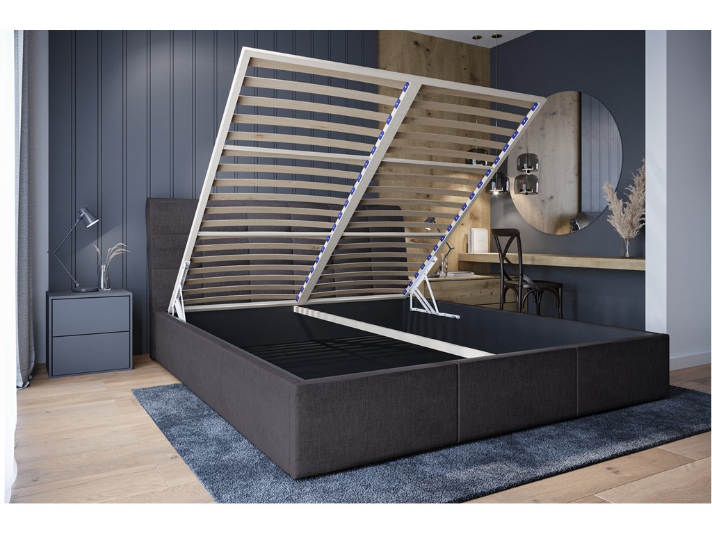 Wbudowany pojemnik zwiększa funkcjonalność i ułatwia organizację przestrzeni w sypialni.