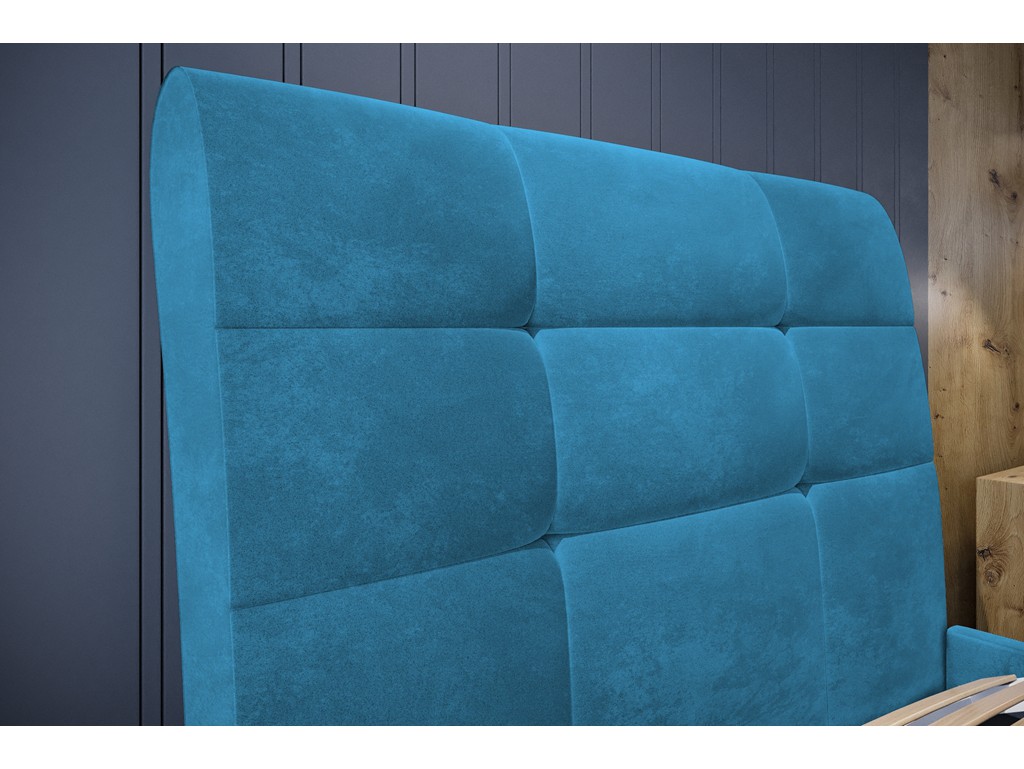 Łóżko tapicerowane Joko w rozmiarze 90 cm w tkaninie Kronos 13 w kolorze lazurowym to propozycja do przestronnych sypialni, łącząca elegancję z nowoczesnym stylem. Lazurowy odcień nadaje wnętrzu świeżości i stanowi wyrazisty element dekoracyjny. Miękka, gęsta tkanina typu welwet jest przyjemna w dotyku i podkreśla estetykę mebla.