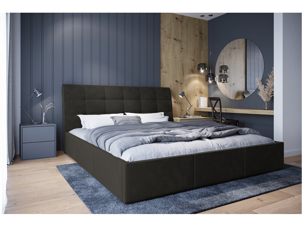 Łóżko tapicerowane Joko w rozmiarze 180 cm w tkaninie Kronos 34 w kolorze ciemnej szarości to elegancka i uniwersalna propozycja do sypialni. Welwetowa tkanina o gęstej strukturze jest miękka i przyjemna w dotyku, co podnosi komfort codziennego użytkowania. Pikowane wezgłowie zapewnia wygodne oparcie, a stabilna tapicerowana rama wraz z drewnianym stelażem odpowiada za trwałość konstrukcji.