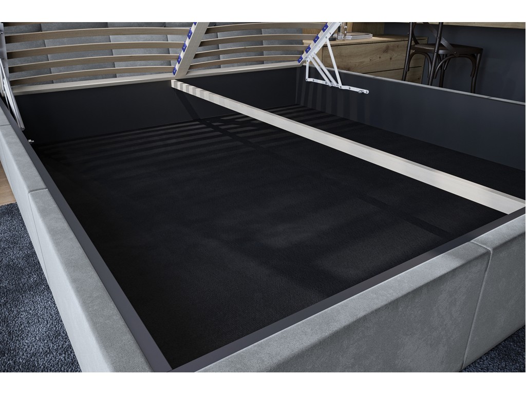 Wbudowany pojemnik na pościel zwiększa funkcjonalność i pozwala lepiej zorganizować przestrzeń w sypialni.