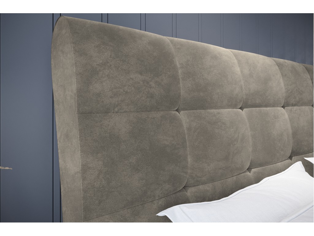 Welurowa tkanina nadaje przytulności i podkreśla elegancki charakter łóżka, a uniwersalny kolor świetnie komponuje się zarówno z jasnymi, jak i ciemniejszymi aranżacjami wnętrz.