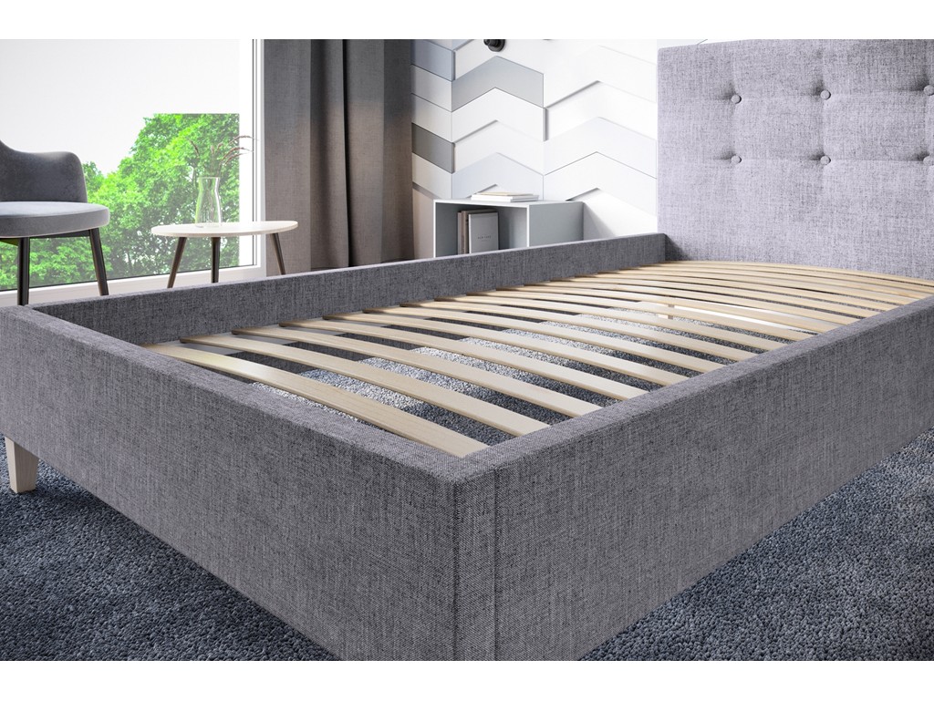 Drewniany stelaż zapewnia stabilną konstrukcję i możliwość dopasowania własnego materaca, dzięki czemu każdy może dostosować komfort snu do swoich potrzeb.