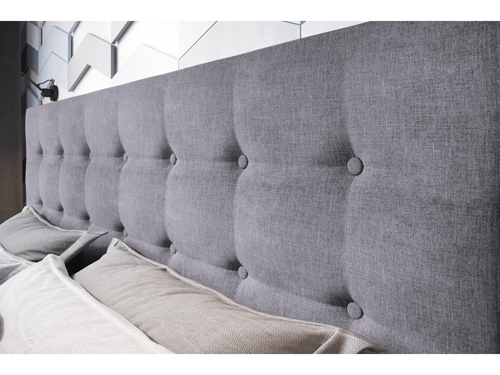 Pikowane wezgłowie dodaje dekoracyjnego akcentu i pełni funkcję wygodnego oparcia.