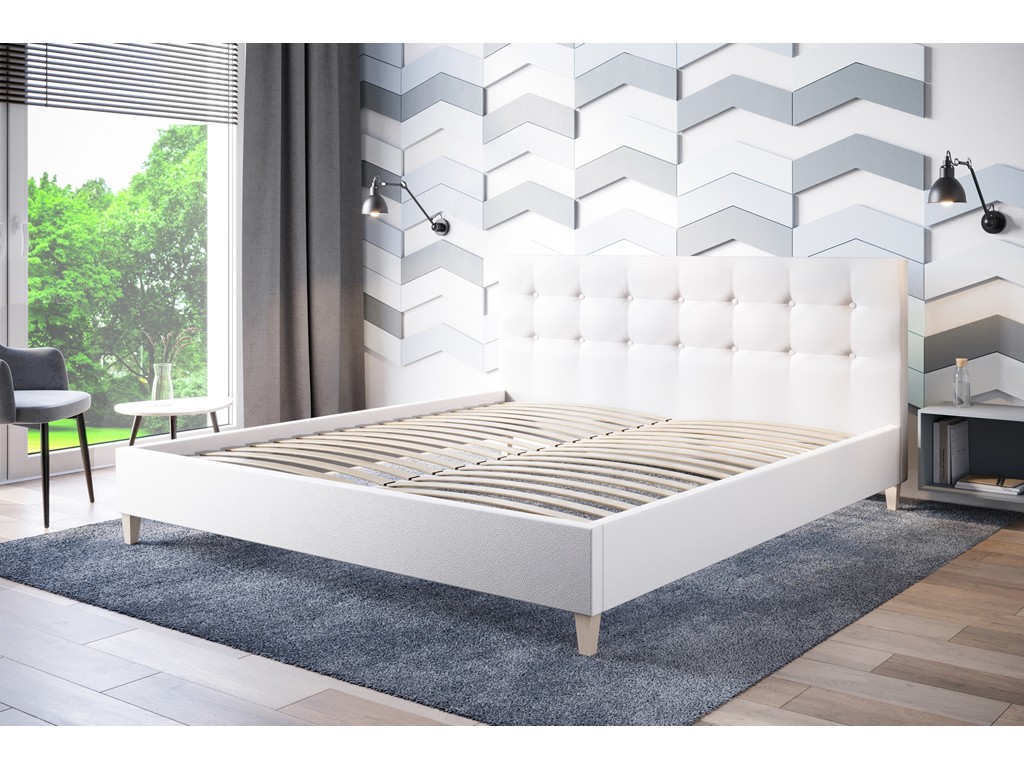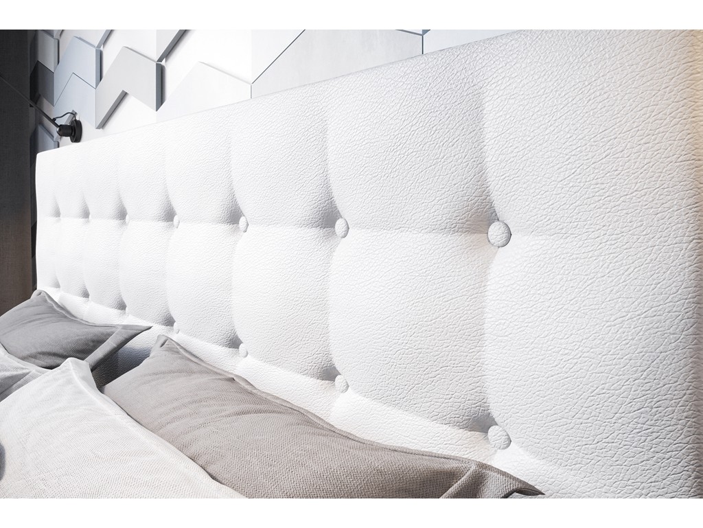 Biały odcień tkaniny Madryt dodaje wnętrzu lekkości i nowoczesnego charakteru, a pikowane wezgłowie stanowi wygodne oparcie dla pleców.