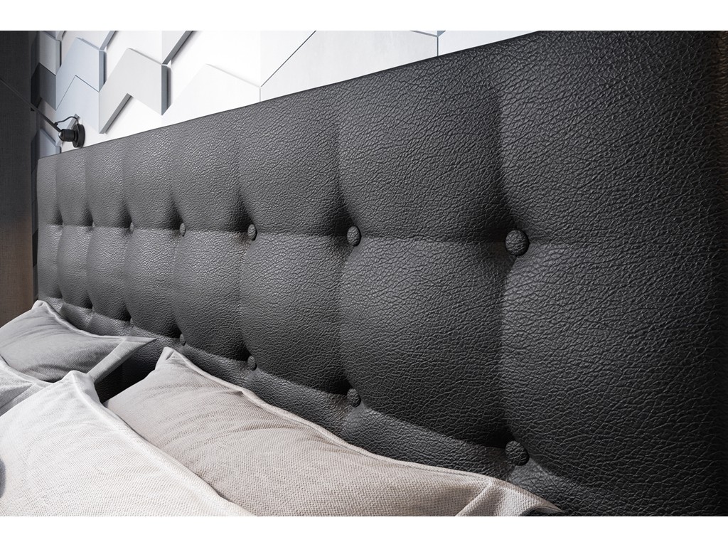 Czarne wykończenie tworzy luksusowy akcent, a pikowane wezgłowie stanowi dekoracyjny detal i wygodne oparcie dla pleców.