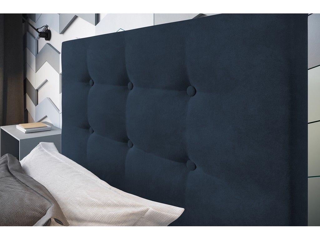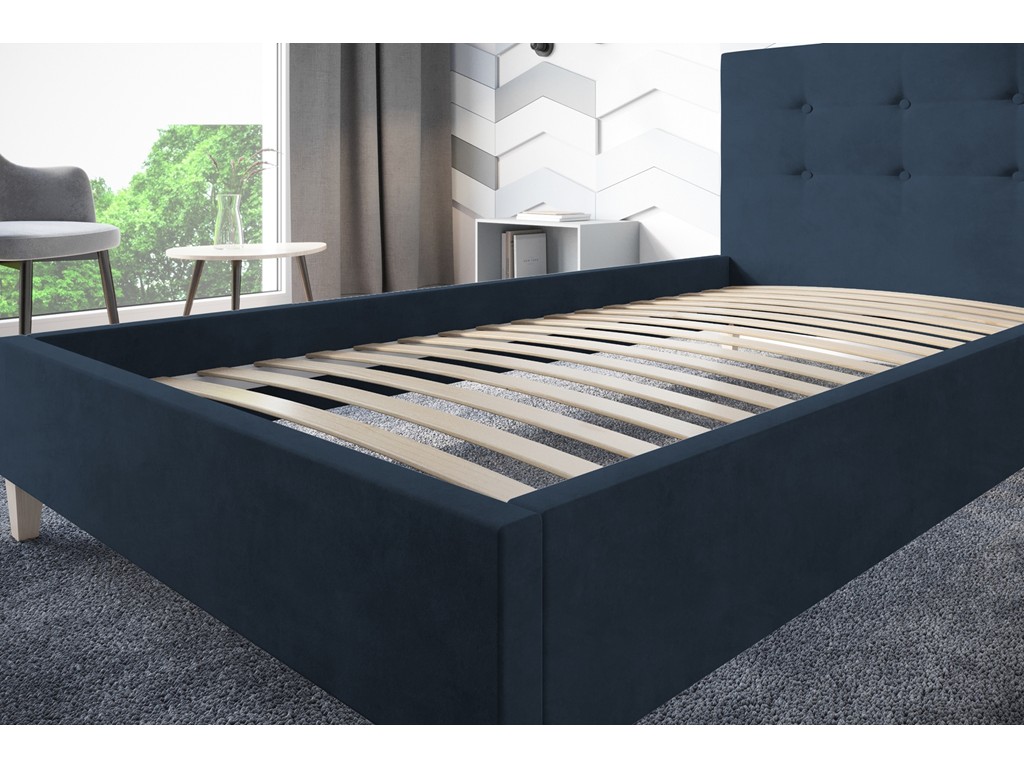 Łóżko tapicerowane Endo w rozmiarze 80 cm to kompaktowa propozycja do najmniejszych sypialni, pokoi dziecięcych lub gościnnych. Granatowa tkanina Monolith 77 o melanżowej strukturze nadaje wnętrzu elegancki i przytulny charakter. Pikowane wezgłowie pełni funkcję dekoracyjną i zapewnia wygodne oparcie.