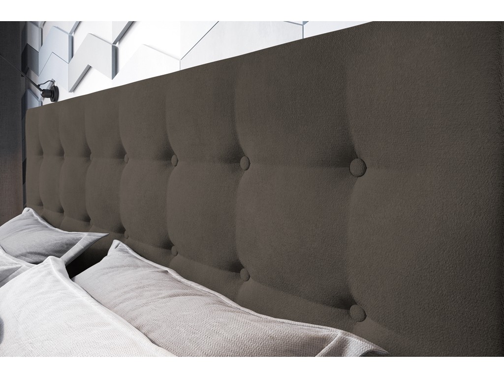 Pikowane wezgłowie pełni rolę eleganckiego akcentu i wygodnego oparcia.