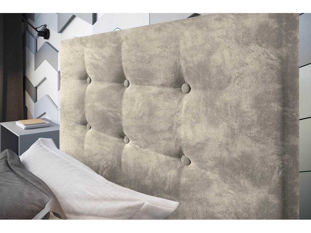 Pikowane wezgłowie stanowi elegancki akcent wizualny i wygodne oparcie.