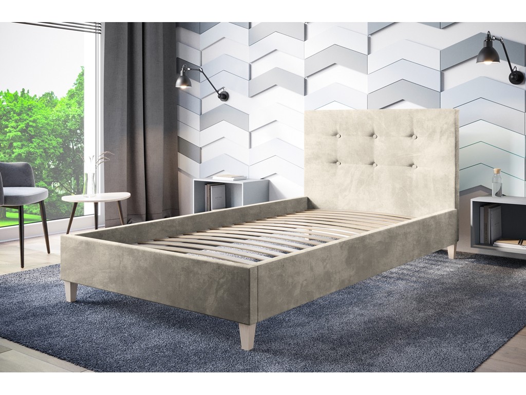 Łóżko tapicerowane Endo w rozmiarze 120 cm to praktyczna propozycja do średnich sypialni lub pokojów młodzieżowych, gdzie ważna jest funkcjonalność i estetyka. Jasny beż tkaniny Riviera 21 o aksamitnej strukturze wprowadza do wnętrza ciepły i harmonijny charakter. Pikowane wezgłowie stanowi dekoracyjny akcent oraz wygodne oparcie podczas codziennego użytkowania. Solidna rama z drewnianym stelażem umożliwia dopasowanie materaca do indywidualnych potrzeb użytkownika.