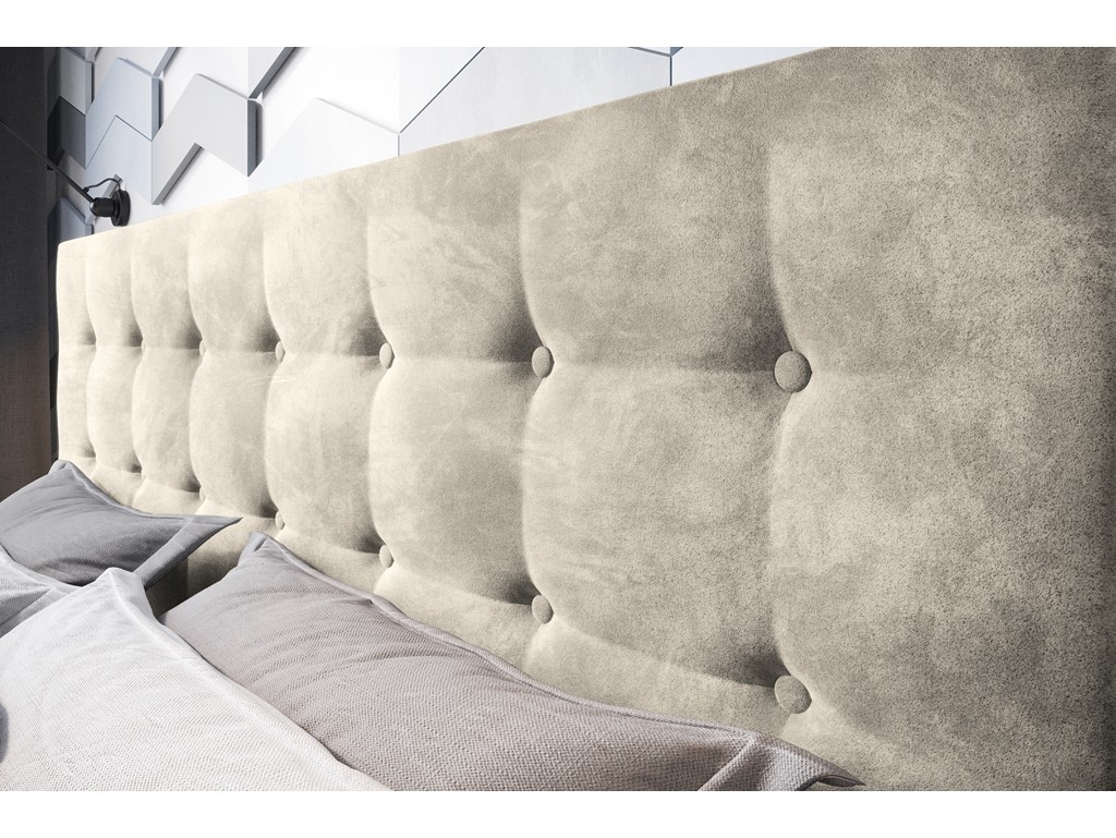 Pikowane wezgłowie zwiększa komfort codziennego użytkowania, a solidna rama i stelaż gwarantują trwałość.