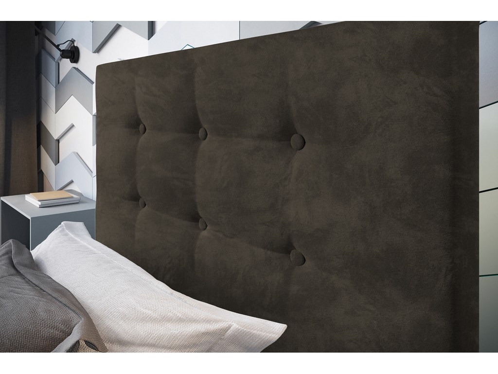 Ciemny brąz dodaje elegancji i ciepła, a pikowane wezgłowie zapewnia komfort oparcia.