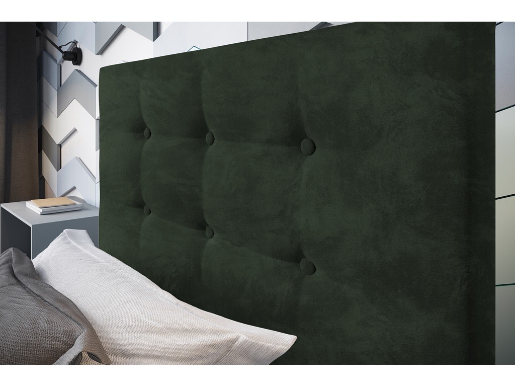 Ciemna zieleń wprowadza do wnętrza harmonię i przytulność, a prosta forma ułatwia dopasowanie łóżka do nowoczesnych i klasycznych aranżacji.