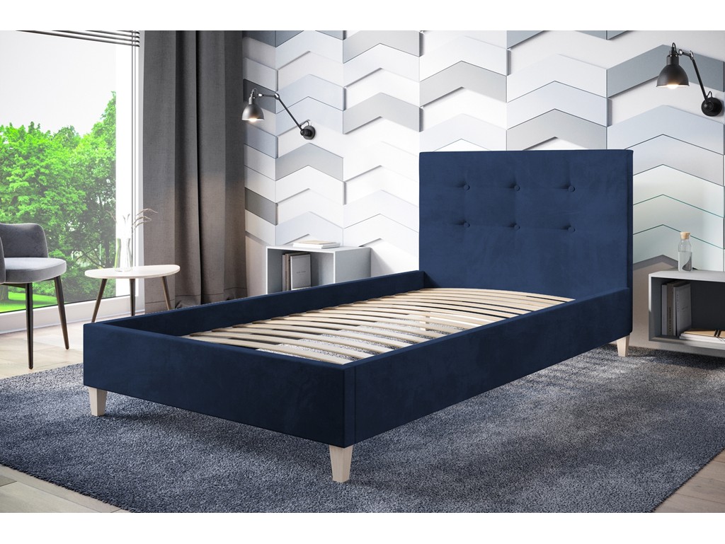 Łóżko tapicerowane Endo w rozmiarze 80 cm to kompaktowe rozwiązanie do najmniejszych przestrzeni – pokojów dziecięcych, gościnnych lub wnętrz o ograniczonym metrażu. Granatowa tkanina Riviera 81 o aksamitnej strukturze nadaje meblowi elegancki wygląd, a pikowane wezgłowie wprowadza dekoracyjny akcent. Stabilna konstrukcja oparta na drewnianym stelażu oraz możliwość doboru materaca zapewniają funkcjonalność i komfort codziennego użytkowania.