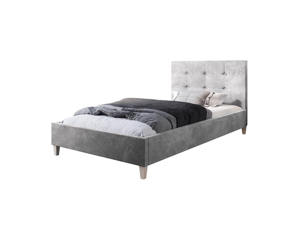 Łóżko Endo w rozmiarze 90 cm to kompaktowa propozycja do pokojów dziecięcych, młodzieżowych i niewielkich wnętrz. Jasnoszara tkanina Riviera 82 nadaje aranżacji lekkości i neutralnego charakteru, który łatwo dopasować do różnych stylów. Pikowane wezgłowie wprowadza elegancki akcent, a drewniany stelaż na taśmie zapewnia odpowiednie podparcie dla materaca.