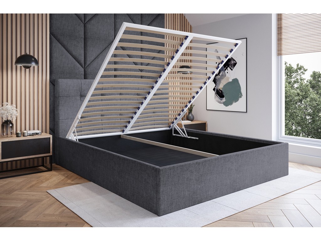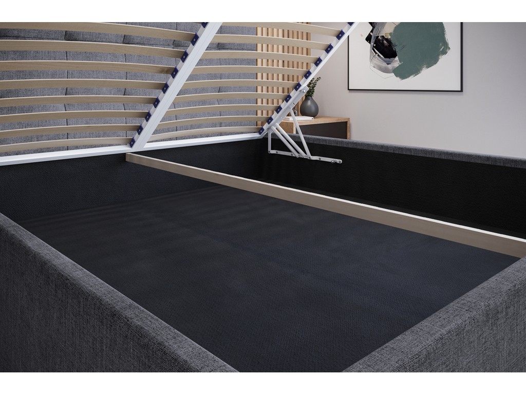 Wbudowany pojemnik umożliwia wygodne przechowywanie kołder, poduszek czy dodatkowych tekstyliów, dzięki czemu łatwiej utrzymać porządek w sypialni.