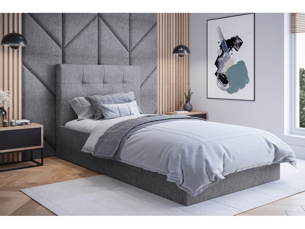 Łóżko tapicerowane Timo w rozmiarze 80 cm w tkaninie Sawana 21 w odcieniu jasnej szarości to neutralna, stylowa propozycja do sypialni. Uniwersalny design sprawia, że łóżko pasuje do większości aranżacji, a pikowane wezgłowie zapewnia wygodne oparcie podczas wieczornego relaksu.
