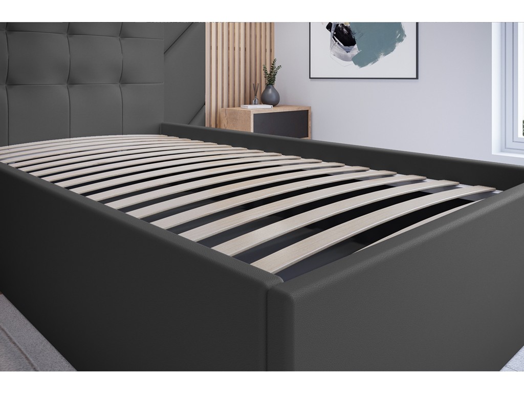 Tapicerowane, wyższe wezgłowie zwiększa wygodę codziennego użytkowania, a solidne wykonanie gwarantuje trwałość na lata.