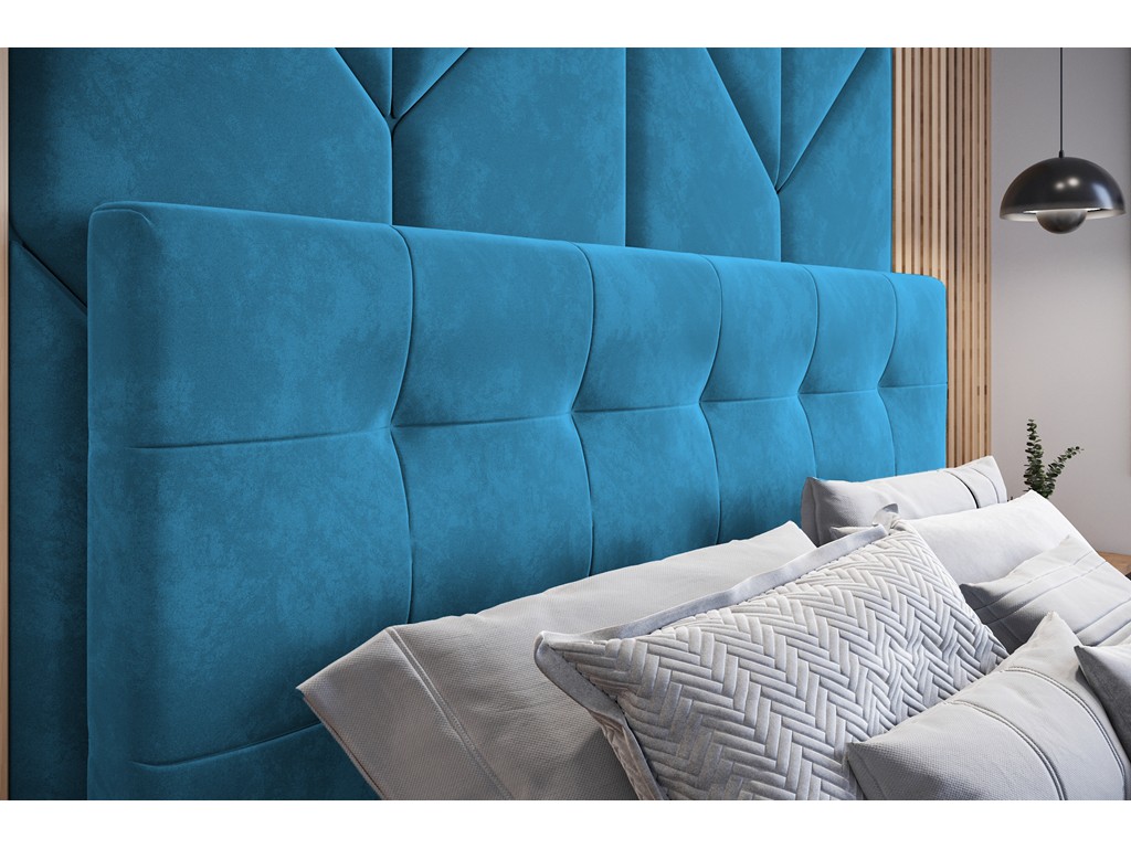 Łóżko tapicerowane Timo w rozmiarze 140 cm w tkaninie Kronos 13 w odcieniu lazurowym to elegancka propozycja do sypialni, która łączy styl i komfort. Pojemnik pod stelażem umożliwia praktyczne przechowywanie pościeli, a miły w dotyku, welwetowy materiał dodaje wnętrzu przytulnosci.