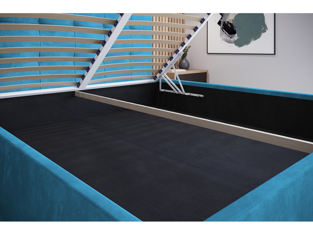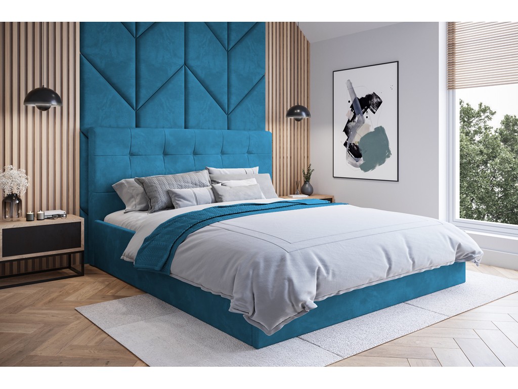 Łóżko tapicerowane Timo w rozmiarze 180 cm w tkaninie Kronos 13 w odcieniu lazurowym to elegancka propozycja do sypialni, która łączy styl i komfort. Pojemnik pod stelażem umożliwia praktyczne przechowywanie pościeli, a miły w dotyku, welwetowy materiał dodaje wnętrzu przytulnosci.