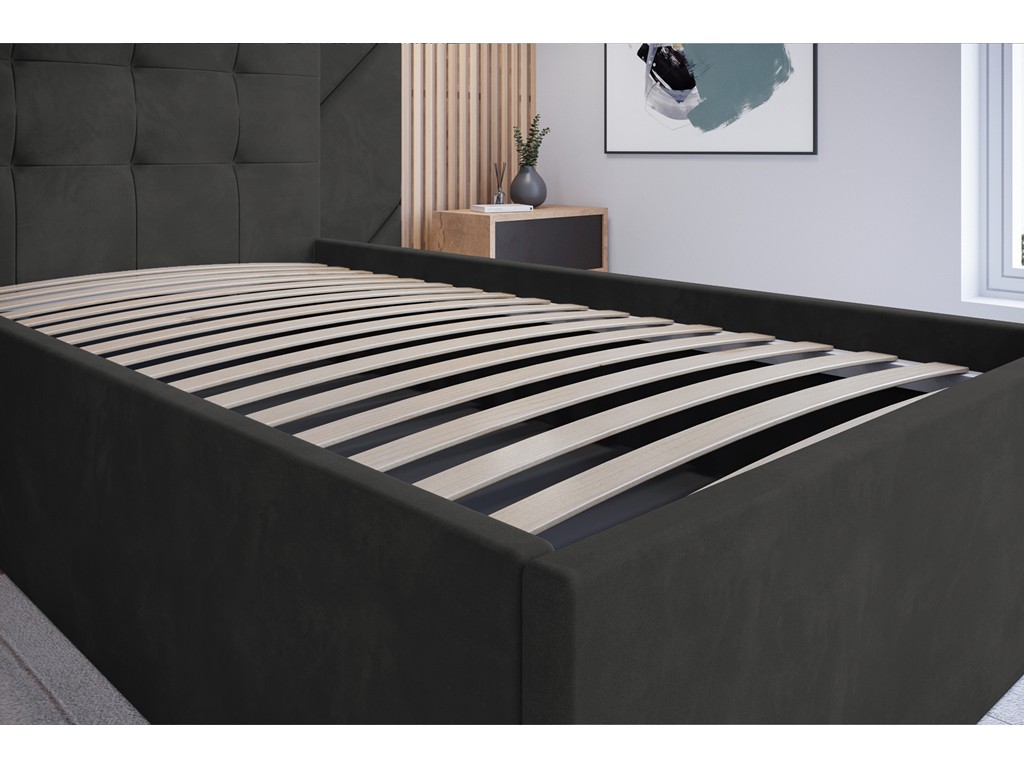 Tapicerowane, wyższe wezgłowie zwiększa wygodę codziennego użytkowania, a solidne wykonanie gwarantuje trwałość na lata.