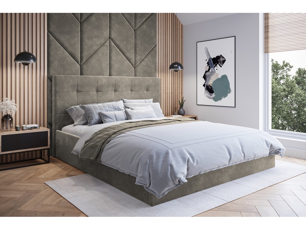 Łóżko tapicerowane Timo 160 Riviera 16 szary beż