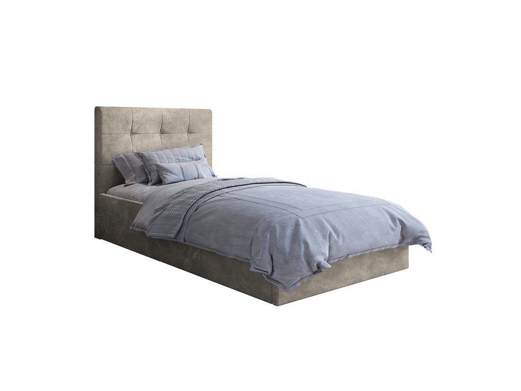 Łóżko tapicerowane Timo w rozmiarze 80 cm w tkaninie Riviera 21 w odcieniu jasnego beżu to praktyczne i stylowe rozwiązanie do pokojów dziecięcych, młodzieżowych, kawalerek oraz mieszkań na wynajem. Pikowane wezgłowie daje wygodne oparcie, a tapicerowana rama wraz z drewnianym stelażem zapewniają stabilne podparcie materaca. Pojemnik pod stelażem umożliwia przechowywanie pościeli, a uniwersalny design pasuje do wielu aranżacji wnętrz.