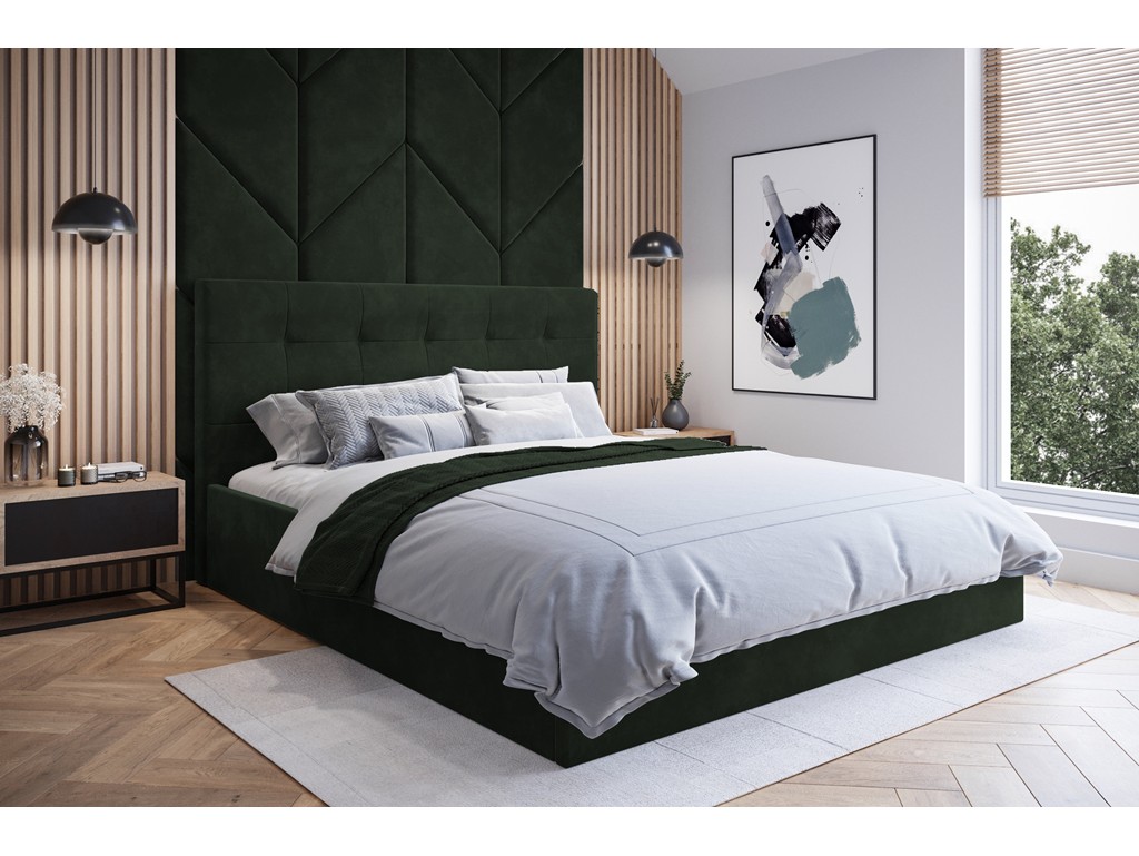 Łóżko Timo w rozmiarze 160 cm w odcieniu ciemnej zieleni to idealna propozycja dla par ceniących wygodę i elegancję.