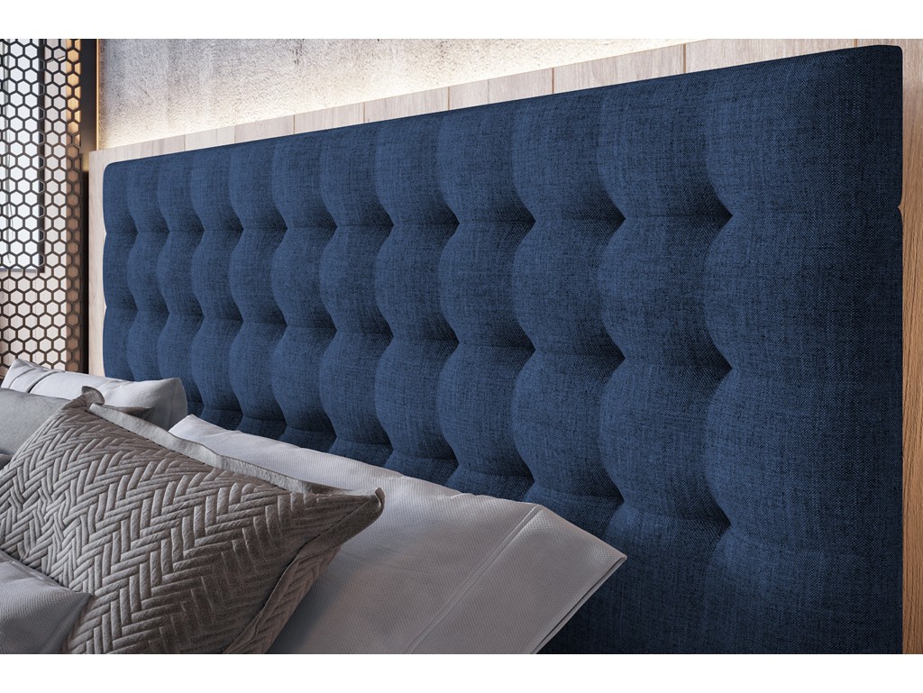 Pikowane wezgłowie zapewnia wygodne oparcie pleców, a tapicerowana rama i drewniany stelaż gwarantują stabilne podparcie materaca.