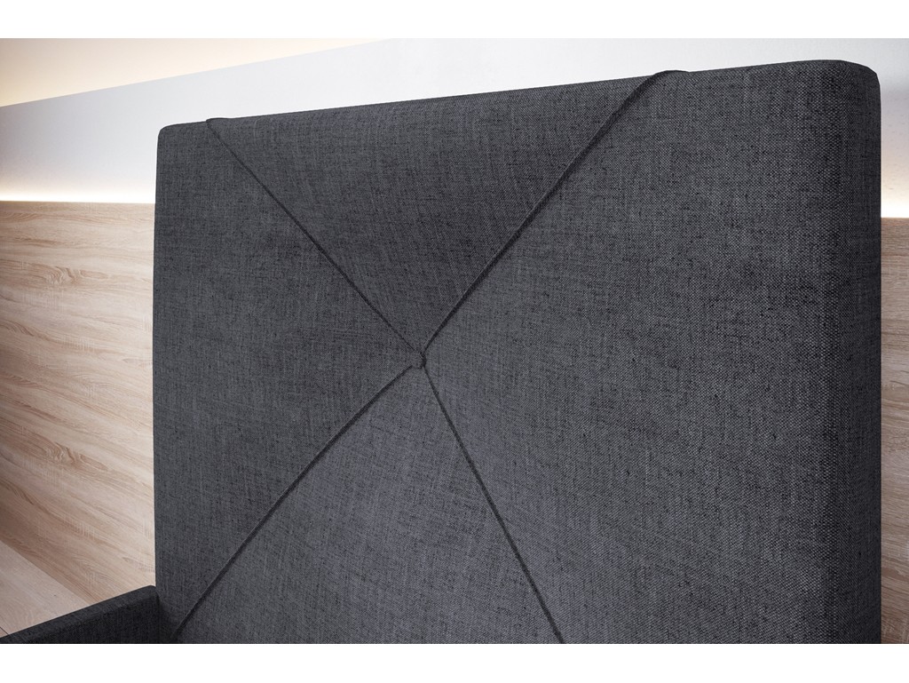 Pikowane wezgłowie zapewnia wygodę podczas odpoczynku, a stabilny stelaż drewniany daje pewność komfortowego snu.