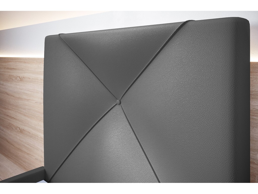 Łóżko Rino w rozmiarze 90 cm w szarej tkaninie Madryt 995 to kompaktowe, a zarazem eleganckie rozwiązanie.