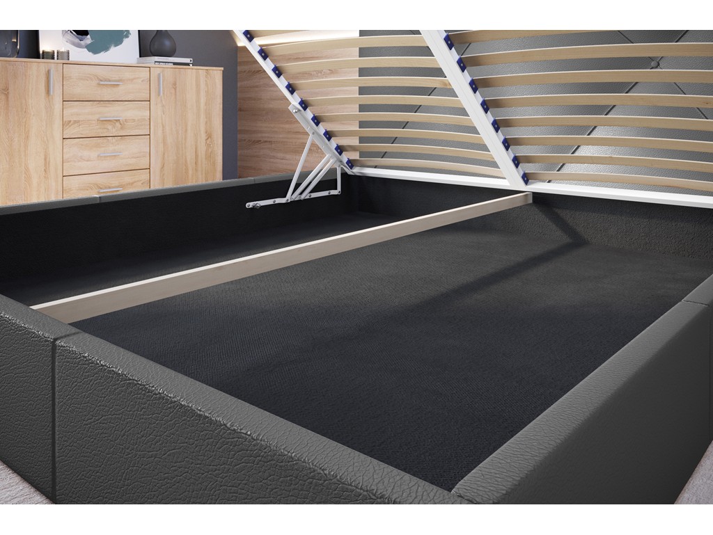 Pojemnik pod stelażem pozwala na praktyczne przechowywanie pościeli.