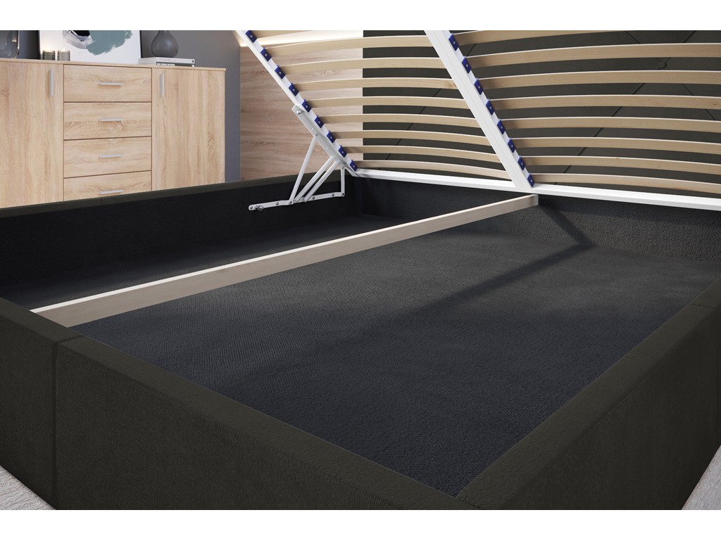Łóżko Rino w rozmiarze 180 cm w ciemnoszarej tkaninie Kronos 34 łączy elegancki wygląd z wygodą codziennego użytkowania.