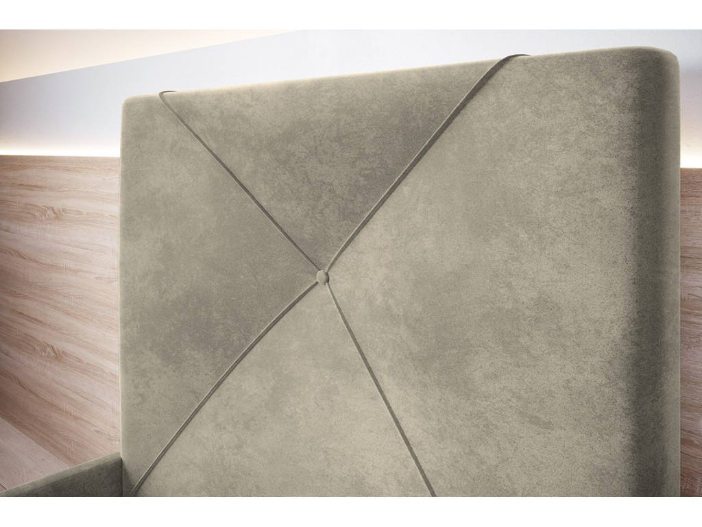 Jasna tapicerka optycznie powiększa przestrzeń, a miękkie wezgłowie zapewnia komfortowe oparcie przy czytaniu lub odpoczynku.